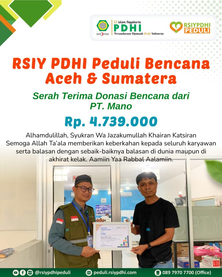 Serah Terima Donasi Bencana Aceh & Sumatera dari PT Mano kepada RSIY PDHI Peduli
